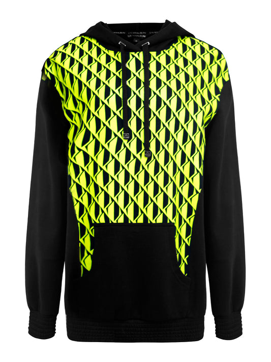 NEON GREEN PRINTED HOODIE WITH SHOULDER PAD