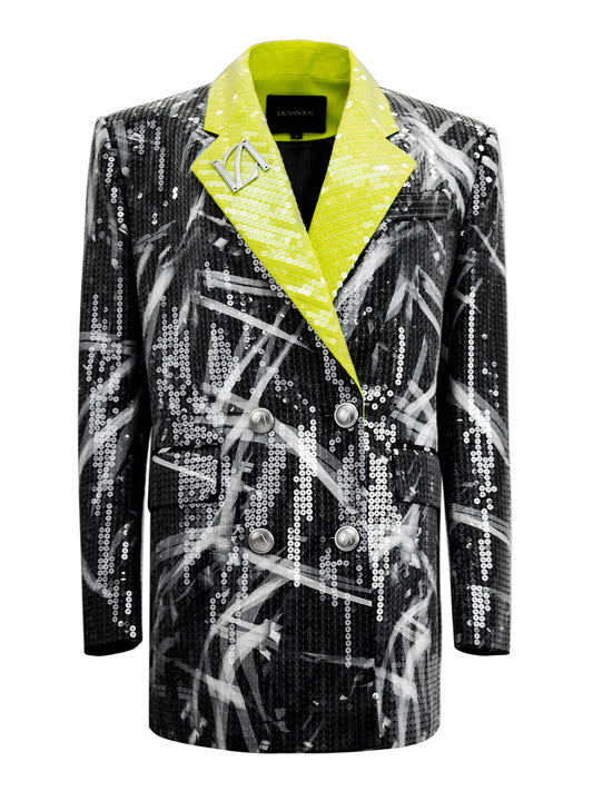 SEQUINNED PRINTED DOUBLE-BREASED BLAZER