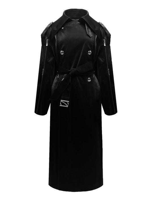 OVERSIZED FAUX LEATHER TRENCH COAT WITH SLIT
