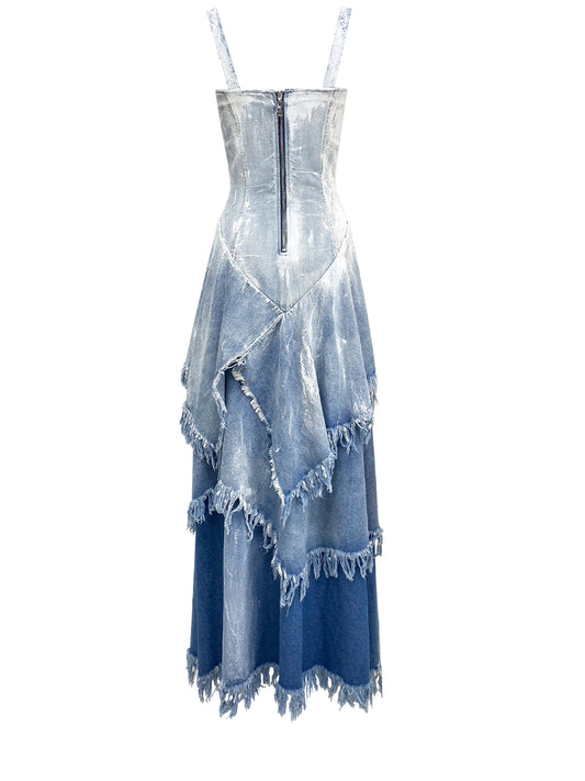 WAISTED DENEM DRESS WITH HAND PAINTING