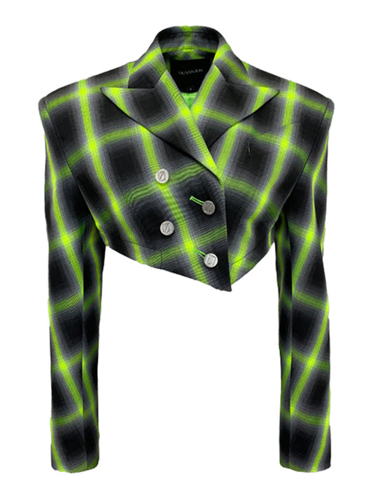 ASYMMETRIC NEON GREEN CHECK CROPPED BLAZER