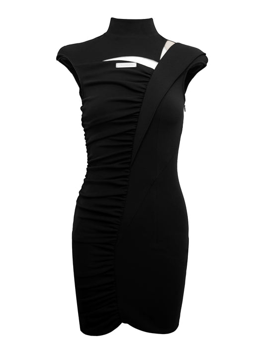 CUT-OUT GATHERED DRESS WITH SHOULDER PAD