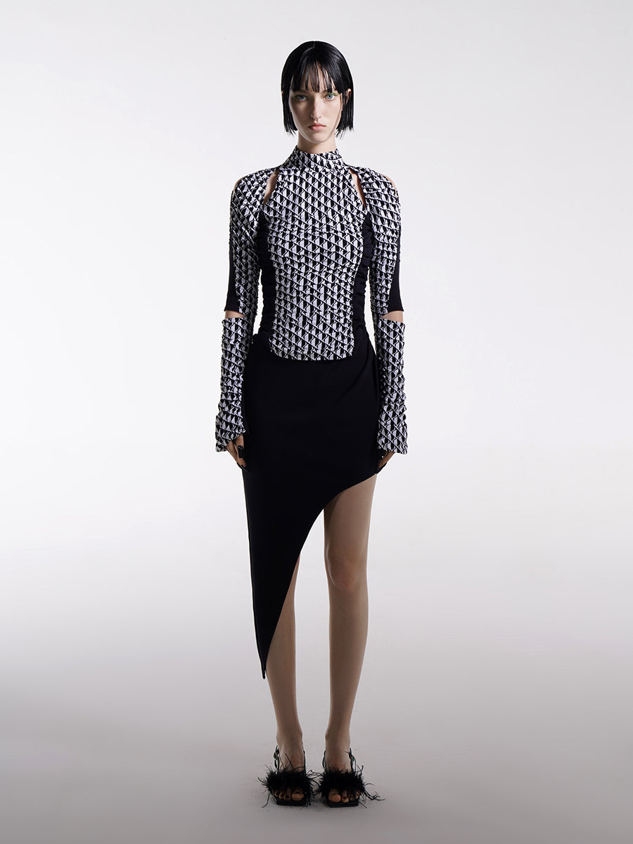 PUFFER JACKET WITH ASYMMETRIC BOTTOM