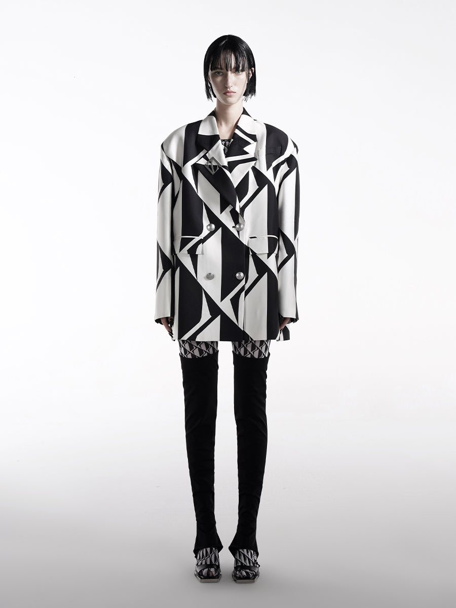 PRINTED DOUBLE-BREASED OVERSIZED BLAZER