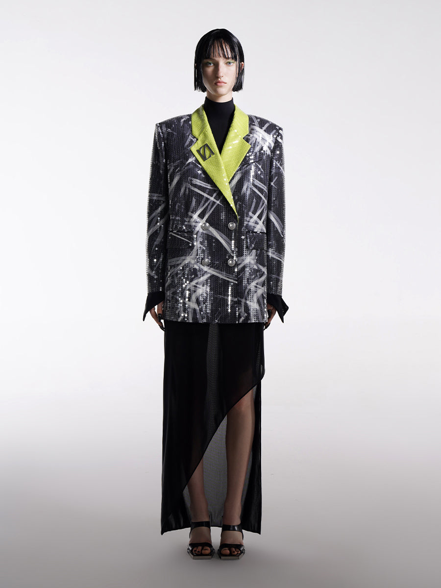 SEQUINNED PRINTED DOUBLE-BREASED BLAZER