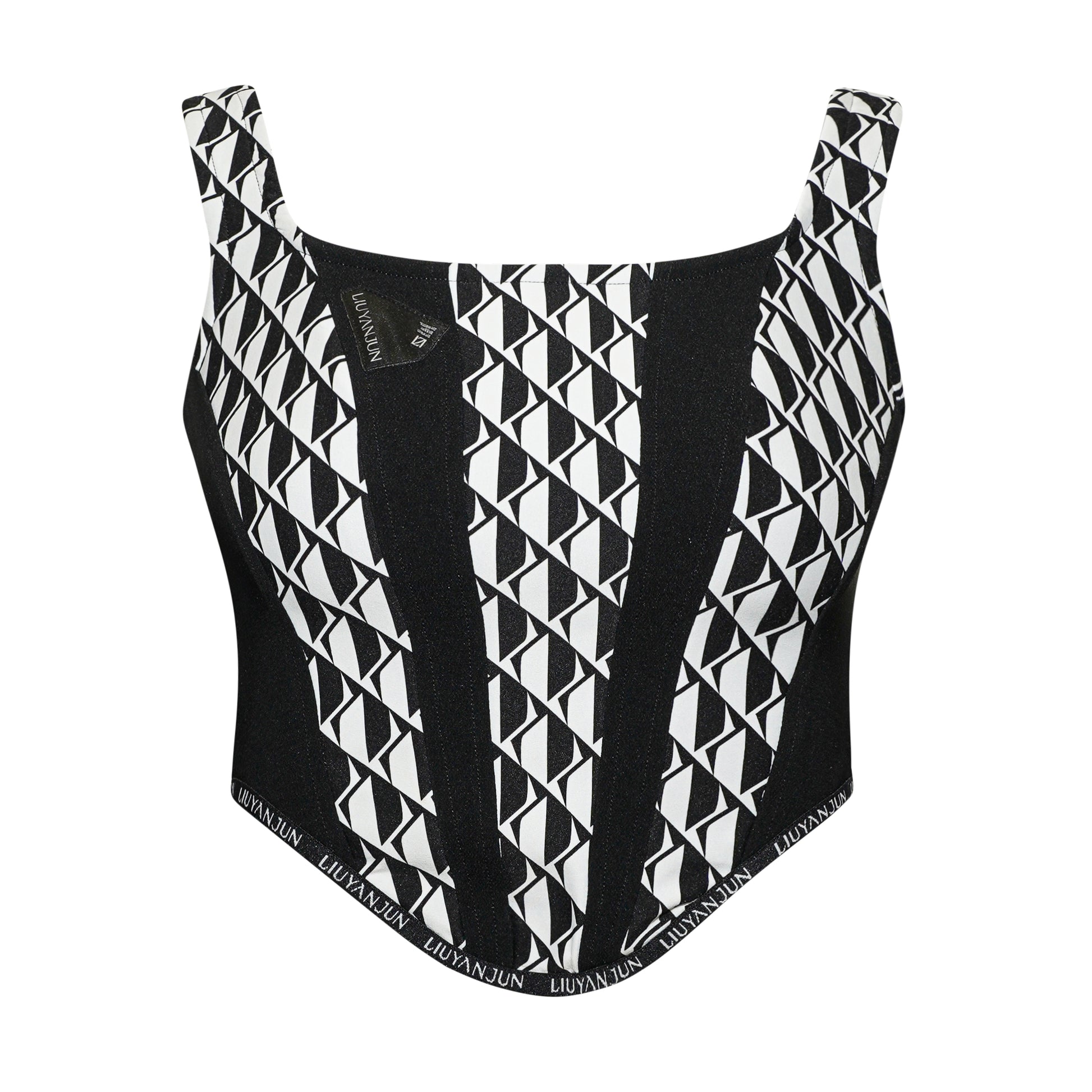 B&W PRINTED CONTRAST CROP TOP WITH CUT-OUTS