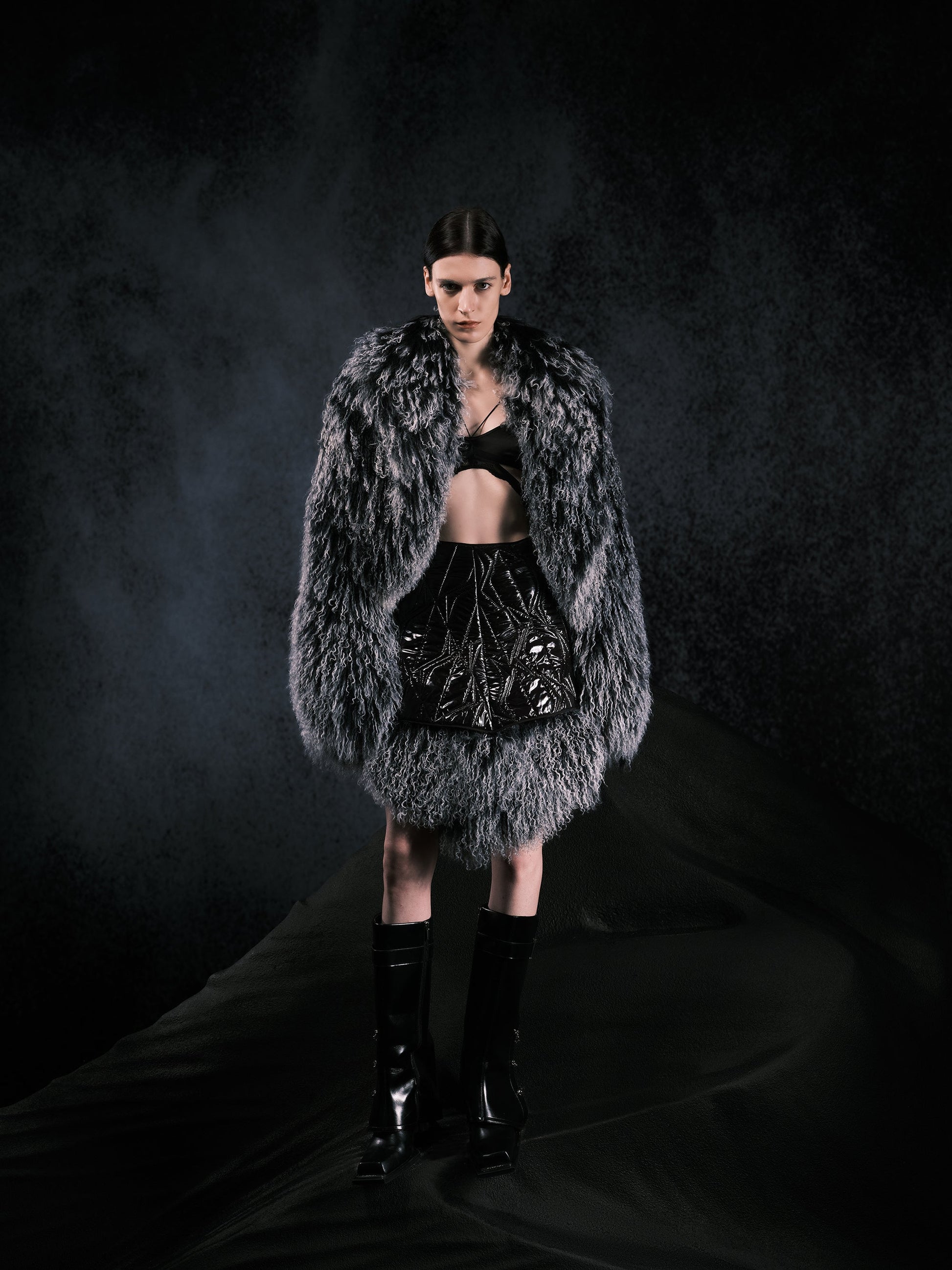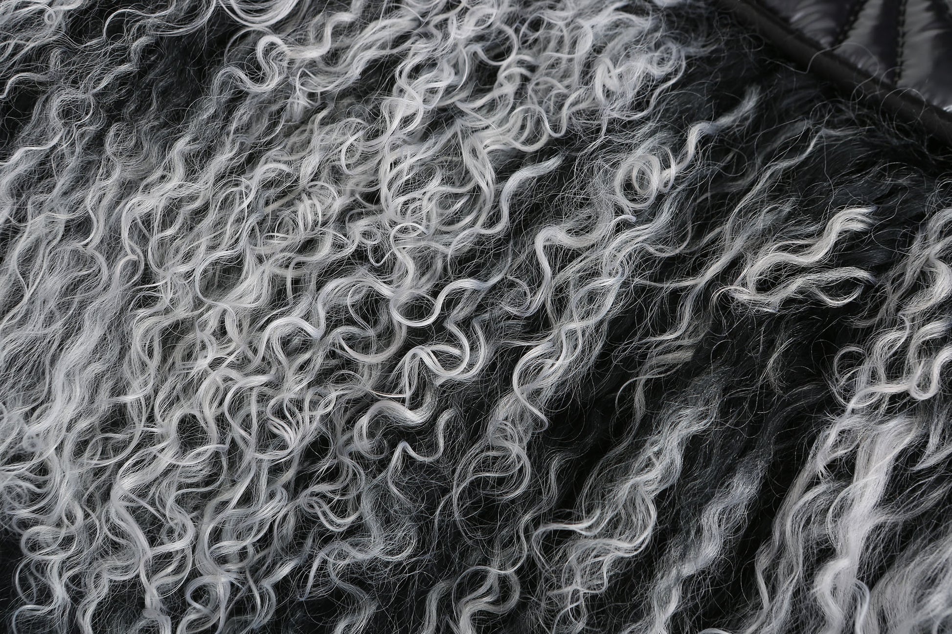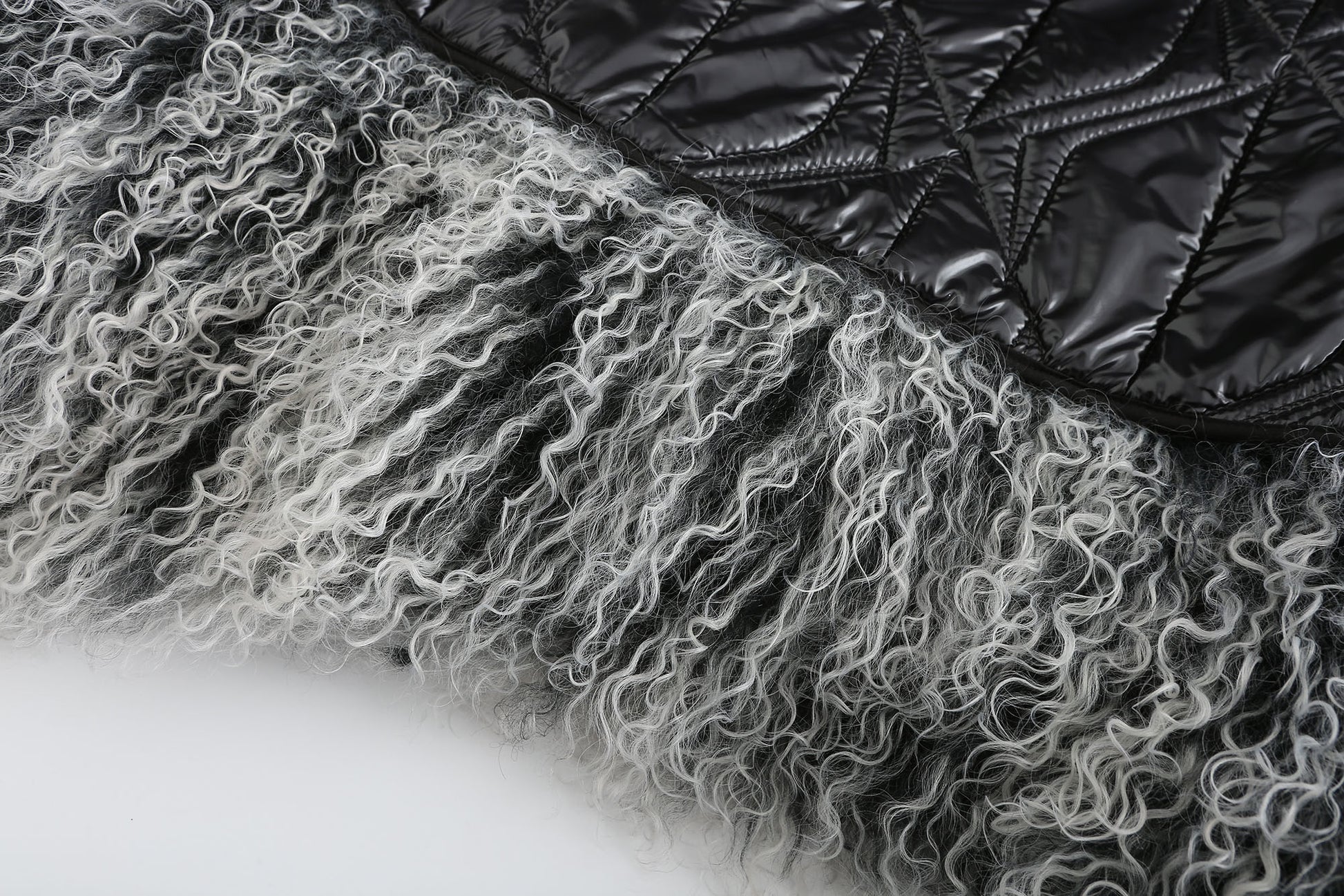 Outer:Polyester100%,Mongolia n Fur100% Lining:Polyester92% ,Elastane8%